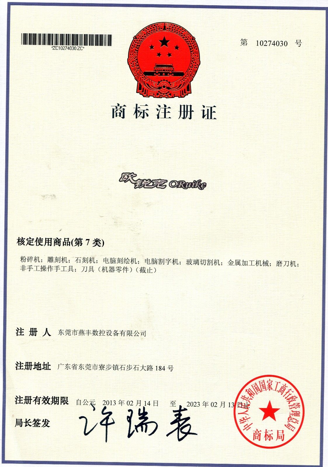 商标注册证13424762085